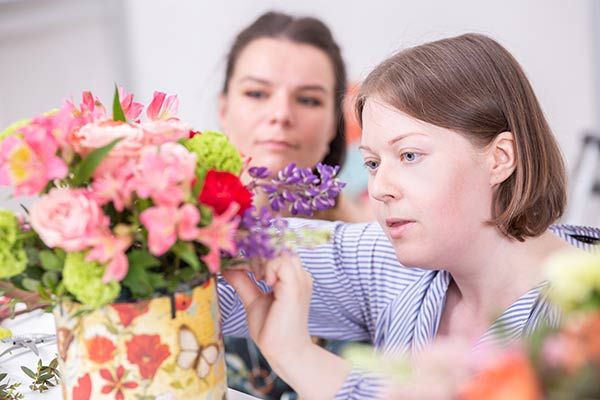 Подбирать цветочные материалы и составлять рецепт букета